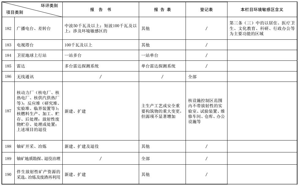 第八條?本名錄自2017年9月1日起施行。2015年4月9日公布的原《建設(shè)項(xiàng)目環(huán)境影響評價分類管理名錄》(環(huán)境保護(hù)部令第33號)同時廢止。