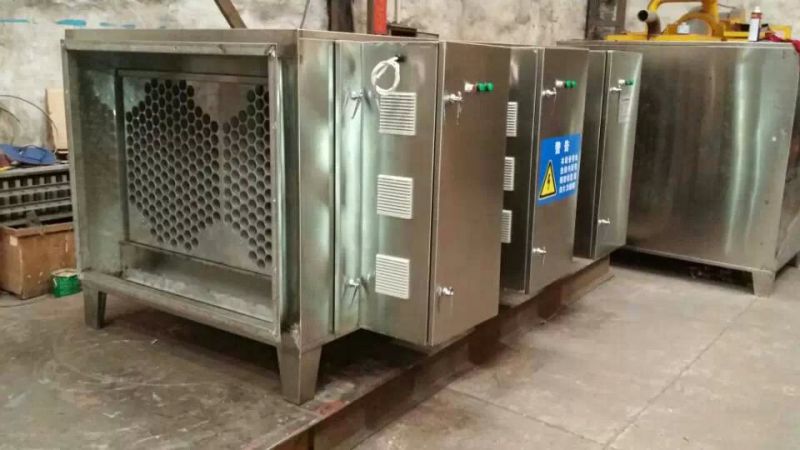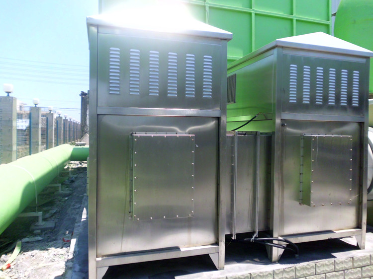 光催化氧化是利用特制的高能高臭氧UV紫外線光束照射惡臭氣體,裂解惡臭氣體如:氨、三甲胺、硫化氫、甲硫氫、甲硫醇、甲硫醚、二甲二硫、二硫化碳和苯乙烯,硫化物 H2S、VOC類,苯、甲苯、二甲苯的分子鍵,使呈游離狀態(tài)的污染物分子與臭氧氧化結(jié)合成小分子無(wú)害或低害的化合物,如CO2、H2O等。
