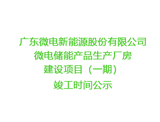 廣東微電新能源股份有限公司微電儲能產(chǎn)品生產(chǎn)廠房建設(shè)項目(一期)竣工時間公示