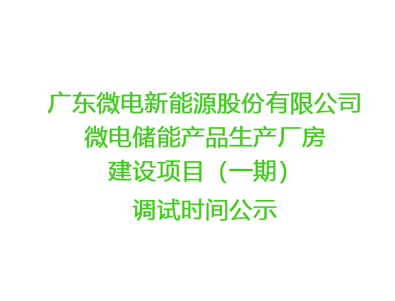 廣東微電新能源股份有限公司微電儲能產(chǎn)品生產(chǎn)廠房建設(shè)項目(一期)調(diào)試時間公示