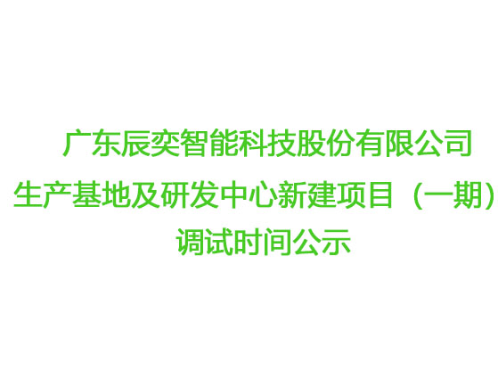 廣東辰奕智能科技股份有限公司生產(chǎn)基地及研發(fā)中心新建項(xiàng)目(一期) 調(diào)試時(shí)間公示