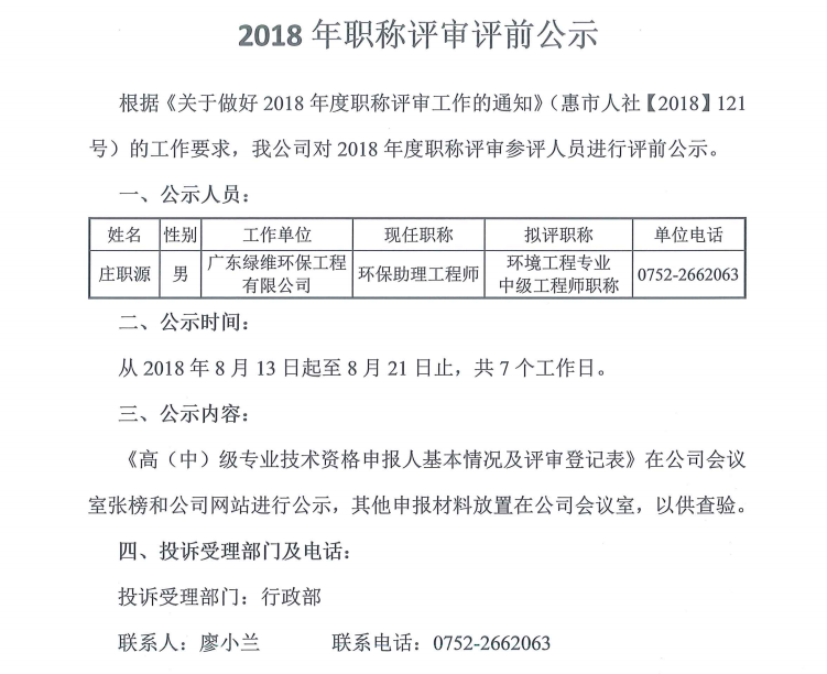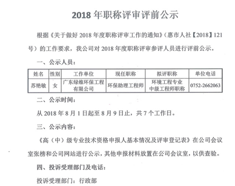 2018年職稱評審前公示