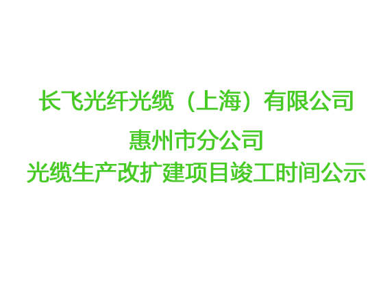 長飛光纖光纜(上海)有限公司惠州市分公司 光纜生產(chǎn)改擴建項目竣工時間公示