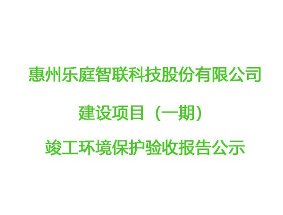 惠州樂庭智聯(lián)科技股份有限公司 建設(shè)項目(一期)竣工環(huán)境保護驗收報告公示