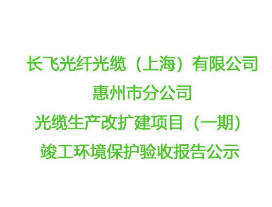 長飛光纖光纜(上海)有限公司惠州市分公司 光纜生產(chǎn)改擴建項目(一期)竣工環(huán)境保護驗收報告公示