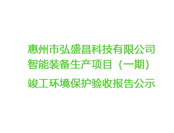 惠州市弘盛昌科技有限公司智能裝備生產(chǎn)項(xiàng)目(一期)竣工環(huán)境保護(hù)驗(yàn)收內(nèi)容(包括驗(yàn)收報(bào)告、驗(yàn)收意見)公示。