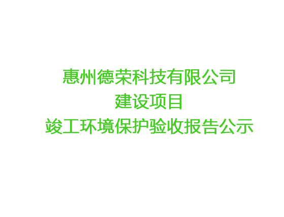 根據(jù)《國務(wù)院關(guān)于修改〈建設(shè)項(xiàng)目竣工環(huán)境保護(hù)管理?xiàng)l例〉的決定》(國務(wù)院令第682號),以及環(huán)保部《關(guān)于發(fā)布的公告》(國環(huán)規(guī)環(huán)評[2017]4號),現(xiàn)將惠州市德榮科技有限公司建設(shè)項(xiàng)目竣工環(huán)境保護(hù)驗(yàn)收內(nèi)容(包括驗(yàn)收報(bào)告、驗(yàn)收意見)公示。