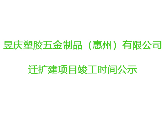 昱慶塑膠五金制品(惠州)有限公司 遷擴(kuò)建項(xiàng)目的竣工日期:竣工日期為2022年7月18日。